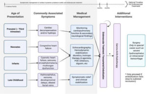 Other treatment options may be used for VOGM, depending on the individual patient’s needs. Medical management is typically given with the aim of stabilizing cardiopulmonary and neurological symptoms before endovascular intervention [16]. Patients with VOGM may also benefit from physical therapy to improve motor skills and from speech therapy to enhance language abilities [21].